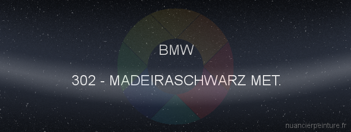 Liste des principales caractéristiques du code peinture Bmw 302 Madeiraschwarz Met.