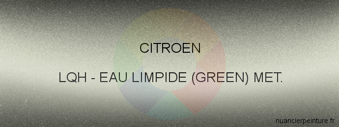 Liste des principales caractéristiques du code peinture Citroen LQH Eau Limpide (green) Met.