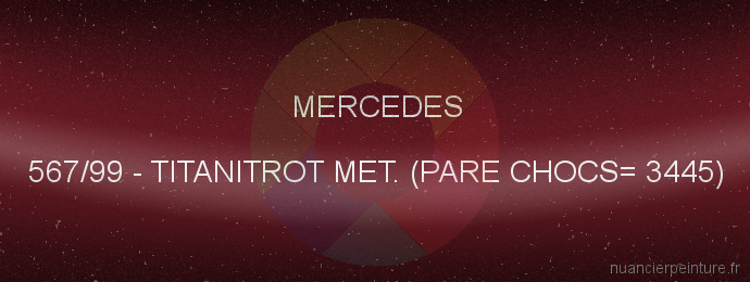 Liste des principales caractéristiques du code peinture Mercedes 567/99 Titanitrot Met. (pare Chocs= 3445)