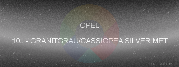 Liste des principales caractéristiques du code peinture Opel 10J Granitgrau/cassiopea Silver Met.