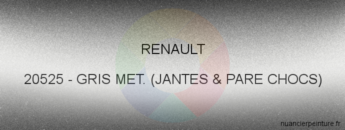 Liste des principales caractéristiques du code peinture Renault 20525 Gris Met. (jantes & Pare Chocs)