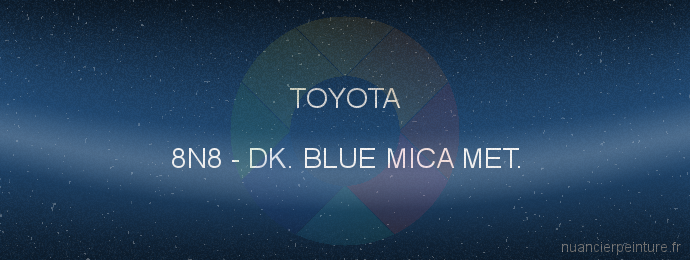 Liste des principales caractéristiques du code peinture Toyota 8N8 Dk. Blue Mica Met.